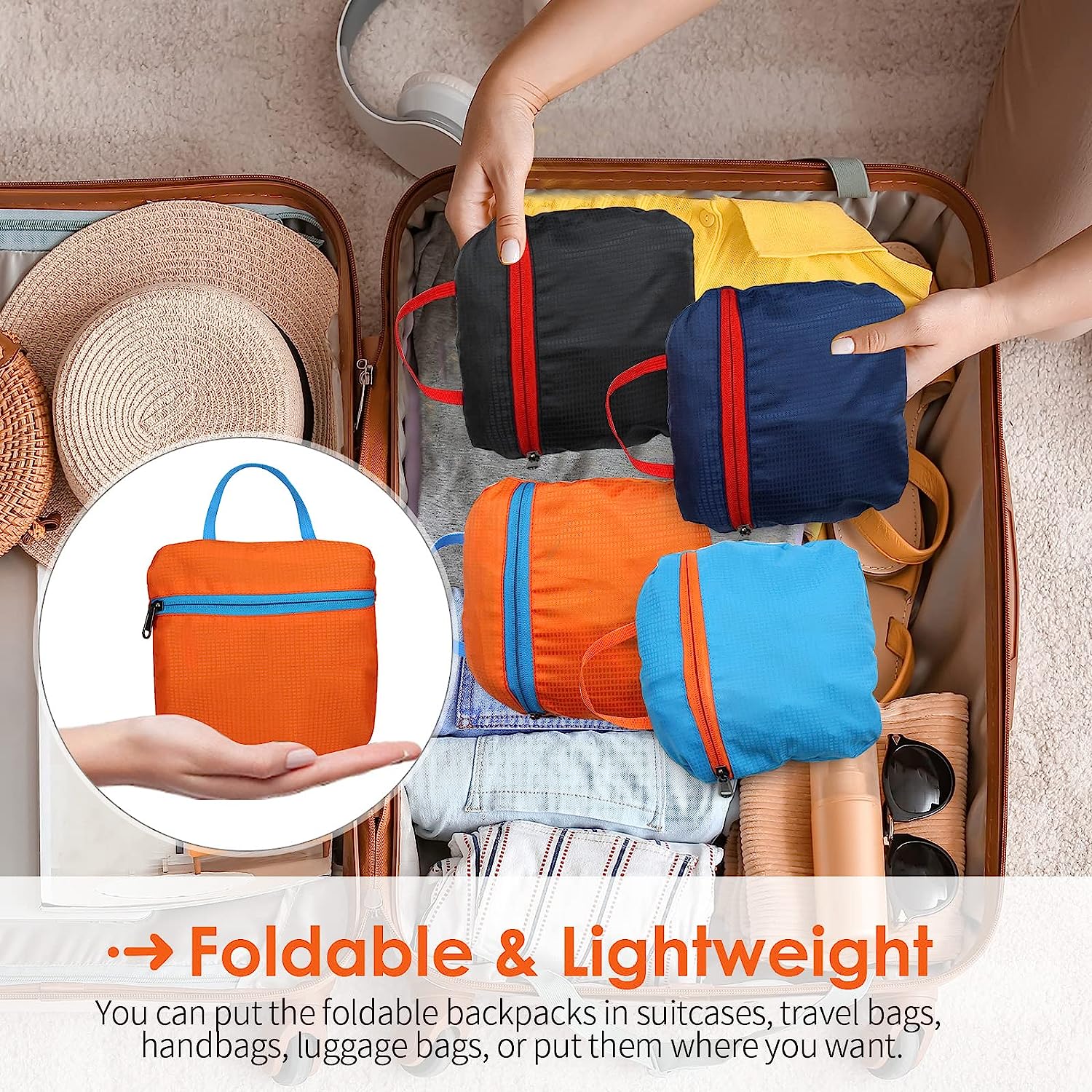 【Foldable & Lightweight】The lightweight backpack weighs only 0.46 pounds, which is equal to the weight of an egg. This 20L packable backpack for travel can be folded into the interior zipper pouch. The folded size is approximately 7.87 x 7.87 x 1.18 inches(a sandwich size). Thus, you can put the small packable backpacks in your travel bag, carry-on bag, luggage corners, or wherever you want.