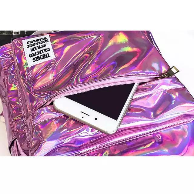 WoMan Hologram Laser PVC Travel Backpacks Teenage Girls Shoulder School Bags / item # RF01-37