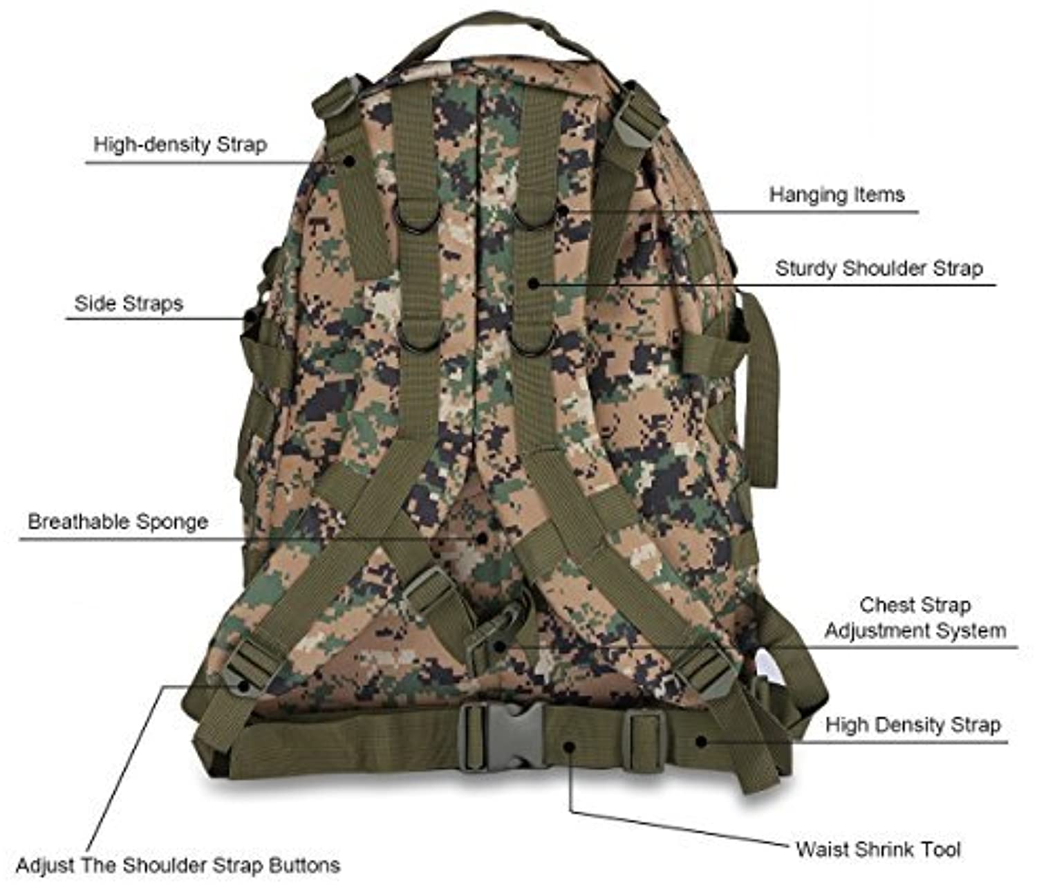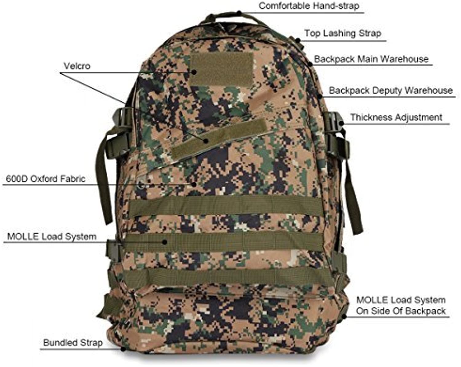 The Main Compartment Features Interlayers,Which Can Better Protect Your Items.And Molle Webbing Can Hand On Small Items,or for Attaching Additional Pouches or Gear