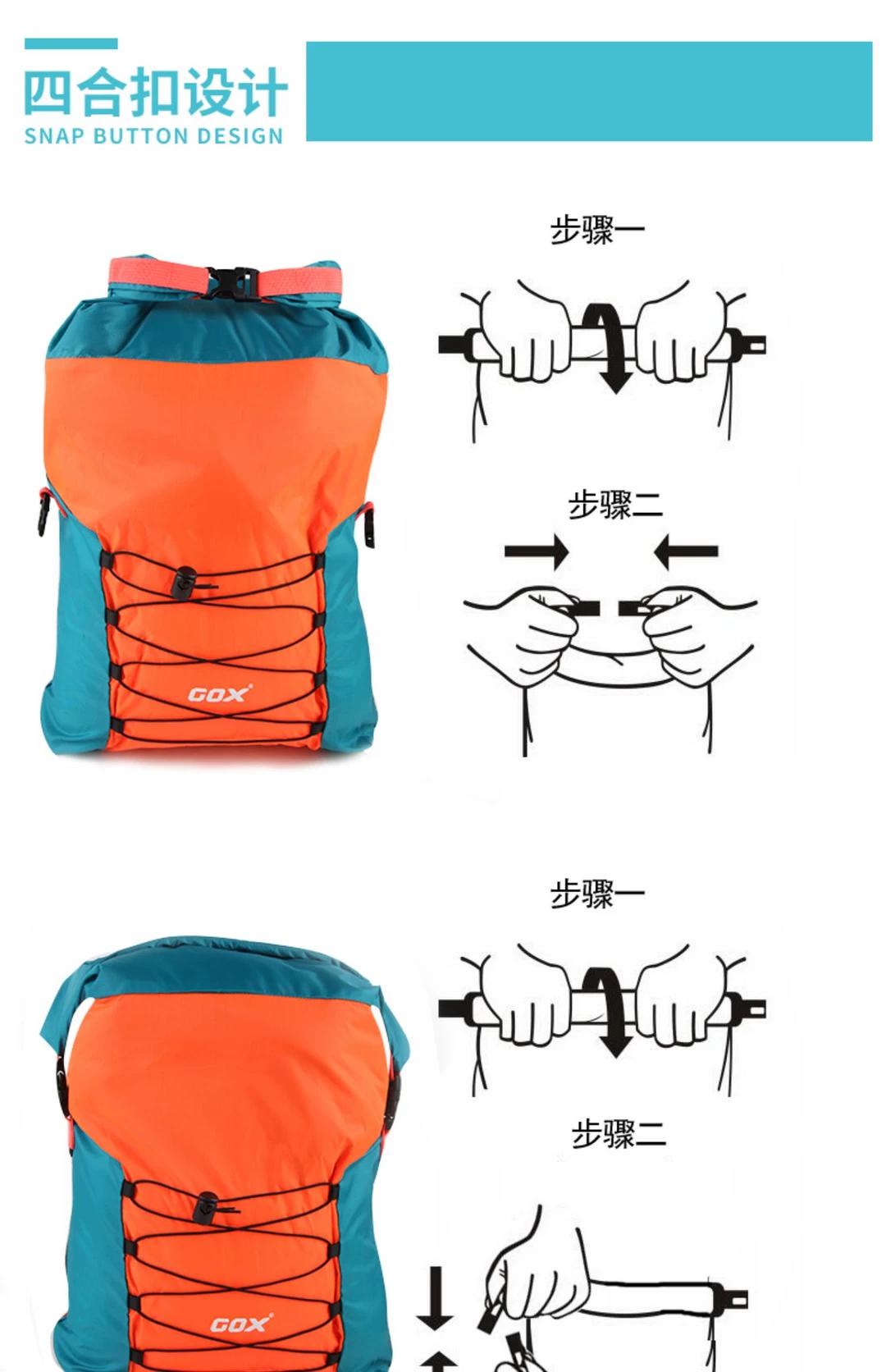 Model item # RB03-06 Product Detail: Size:Unfold length 29* height 52* thickness 10cm , fold 15.5*9.5cm Weight: 155g Material: Nylon Colour: As show Capacity:20L |