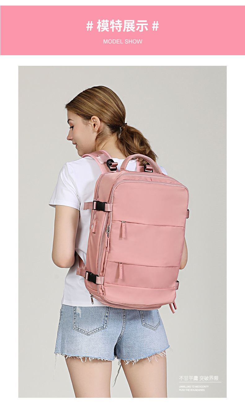 Model item # LW05-02 Product Detail: multifunctional backpack for luggage, shoe pocket, large capacity Colors: PMS Material:Nylon (waterproof) Size:42X31X17 cm |