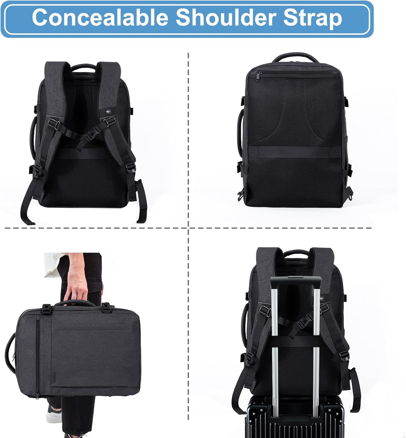 【Double Handle Design】:Two padded handles on the top and sides are designed to lift the carryon backpack from multiple angles. Comfortable and breathable back design provides you with maximum back support. This travel backpack carry on has a hidden shoulder strap design that can be hidden on the back panel when not in use.