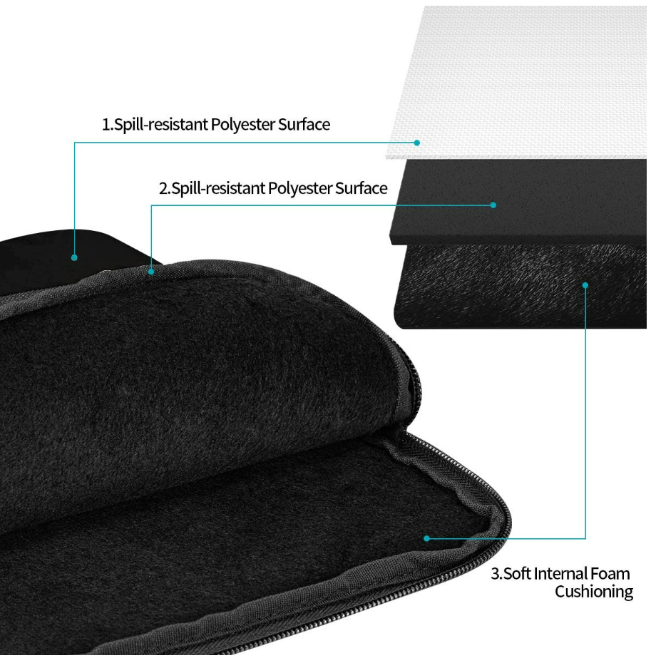 The zipper on the top opening smoothly slides the opening for easy access to the device. Slim and light, it does not make the device bulky, and can be easily slid into a briefcase, backpack or other bag.