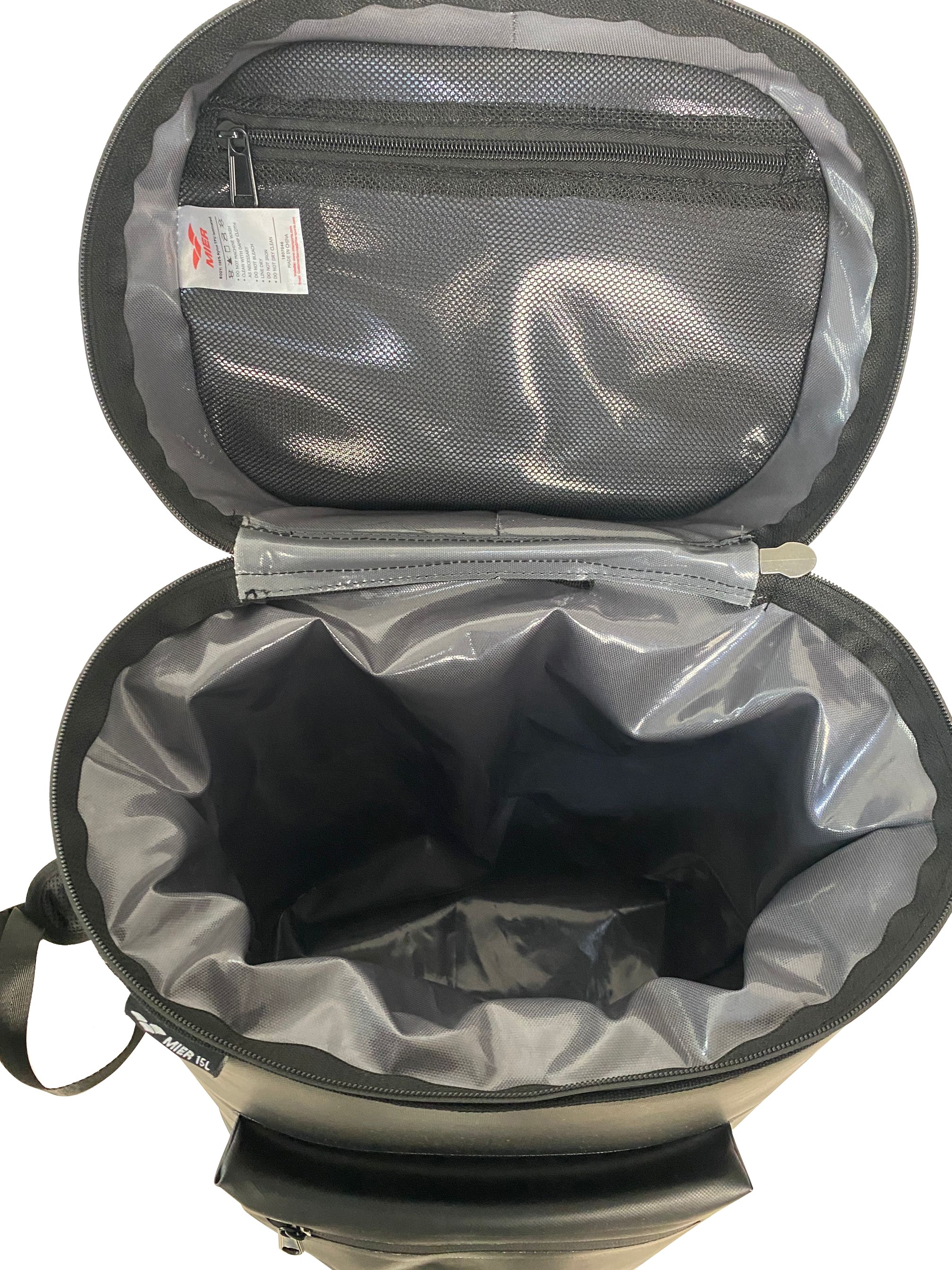 A backpack with a soft cooler, they can be used together or by separate. Roomy enough to hold a day’s needs for your daily trip.