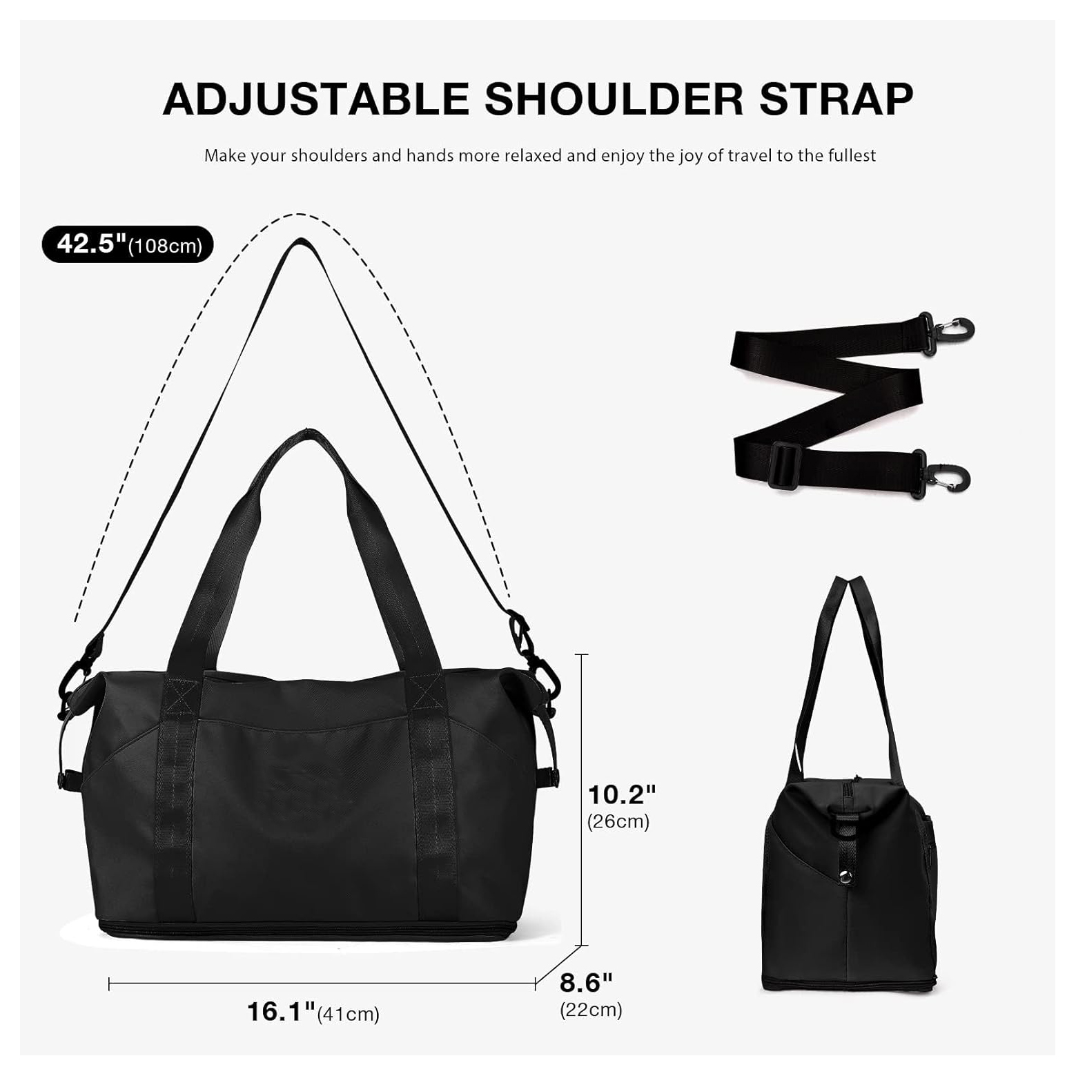 (1)The strap is soft and heavy duty, which could let your hands free, perfect choice for your weekend holiday. Durable and wear-resistant,You can put the overnight bag for airplanes under seat.