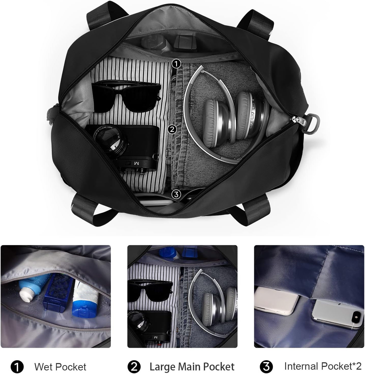 Travel Duffel Bag Weekend Bag with Trolley Sleeve, Dry & Wet Seperated Sports Gym Bag Waterproof Bag Carry On Bag for Women Men Weekender Tote Bag Hospital Bag / ItemYH02-171